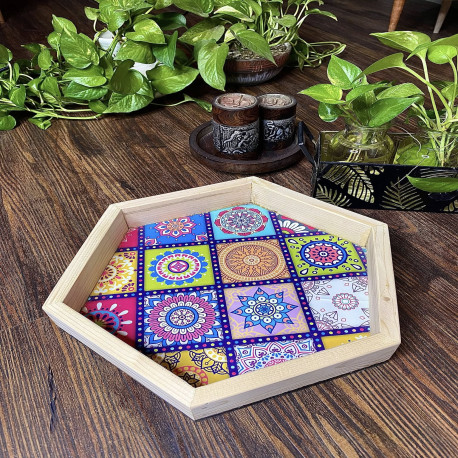 Wooden Mandela Hexa Tray