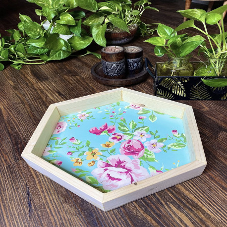 Wooden Floral Hexa Tray